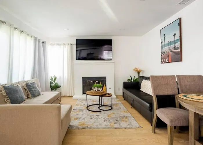 Los huéspedes pueden saborear platos latinos en el restaurante Tito's Tacos, a tan solo 5 minutos a pie. Situada a un paso de la villa, la estación de autobuses Venice & Sawtelle ofrece alternativas de transporte en las inmediaciones.